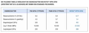 VORTEILE VON ROTEC® HPPA GEGENÜBER STANDARD PA6 UND PA66 POLYAMIDEN:
